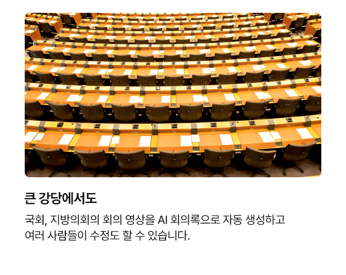 한국수자원공사: 인사 DB 및 사내 시스템 API 연동수천 명 임직원이 별도 관리 없이 자동 권한 설정으로 사용 중이며, 실시간 자막 서비스와 커스터마이징된 STT 기능을 통해 완벽한 AI 생태계를 구축했습니다.